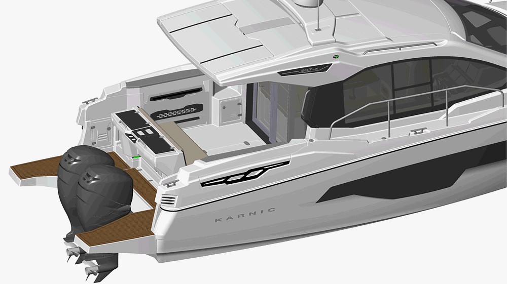 S37x je najnoviji Karnicov adut u klasi plovila preko 10 metara po konkurentnoj cijeni. To je obiteljski krstaš robusnog trupa i funkcionalne opreme. S37x izražava ključ koncepta Karnicovog oblikovanja - jedanaest metara sportskog stila i djelotvornosti, koji novi brod čine ekstremno ugodnim i komfornim, što je rezultat idealne organizacije prostora koja kreira protočnost između unutrašnjih i vanjskih prostora. Gornju palubu čine prostrani modularni kokpit, salon s kuhinjom unutar kormilarnice, te popularno pramčano sunčalište. Ispod palube nalaze se tri kabine, dvije za goste i jedna vlasnička, uz toaletni prostor s tušem, što omogućuje da na brodu mogu prespavati 5+1 odrasla osoba. Neophodan temperament brodu daje motorni pogon, kojeg čine dva izvanbrodska motora do ukupne maksimalne snage od 900 KS.