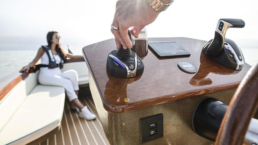 Upravljač nudi ujednačene manevre i oštre, responzivne okretaje na mjestu zahvaljujući širokom upravljačkom kutu. Joystick, baziran na HelmMaster EX sustavu koji se tradicionalno nalazi samo u Yamaha Premium i High Outboard Power rangu, nudi potpunu intuitivnu kontrolu i ovladavanje brodom bez napora.