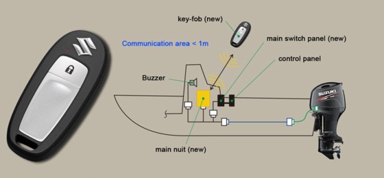 Nakon odlaska s plovila motor se zaključava pritiskom na daljinski ključ. U slučaju krađe, motor se ne može startati bez prisustva odgovarajućeg daljinskog ključa što svakako predstavlja veliki doprinos sigurnosti. Keyless sustav može se ugraditi u kombinaciji sa Suzuki motorima snage 100, 115, 140, 200, 250 i 300 konjskih snaga.