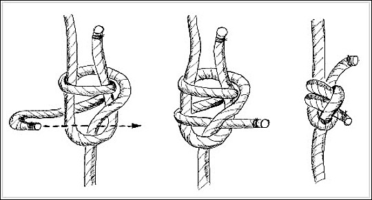 Veže se tako da se vezani zastavni čvor ne zategne vec se krajem užeta napravi još jedan voj oko petlje, a ispod užeta kojim se veže, te tek tada zategnu krajevi, a samim time i čvor.