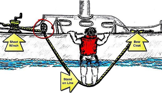 Slijedite dolje opisane korake zajedno uz ilustraciju. Izradite osobitosti svojeg broda. Probajte po mirnom vremenu uvježbati ovu metodu sa svojom posadom ili partnerom. Na taj će način sve ruke biti spremne za primjenu ove jedinstvene tehnike u datom trenutku, jer takvi trenuci se dešavaju iznenada i onda nema vremena za puno razmišljanja.