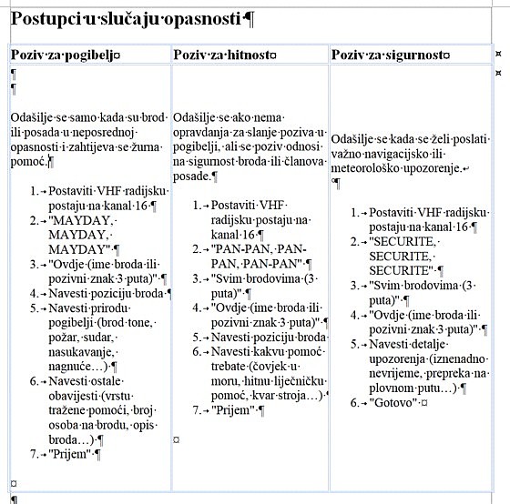 • MAYDAY, Ovo je brod / This is boat (recite ime broda 1 put)