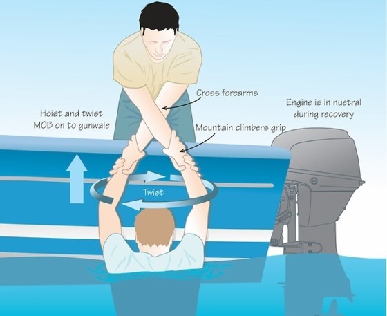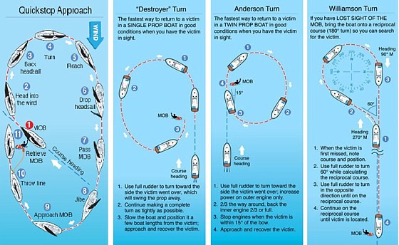 No postoje i drugi načini, posebno kad tek nakon izvjesnog vremena uočite da nedostaje neki član posade. Jer u slučaju pada čovjeka u more, kada temperatura vode ne prelazi 17 stupnjeva, vrijeme preživljavanja je oko jedan sat, pa je svaka pojedinačna minuta važna. Prve osobe koje mogu spasiti unesrećenog su članovi posade.