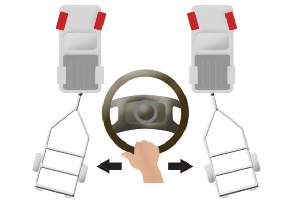 Kako upravljati. Kada se spuštate unatrag, stavite ruku na dno volana. Kada ruku pokrećete lijevo ili desno, prikolica će ići u istom smjeru.