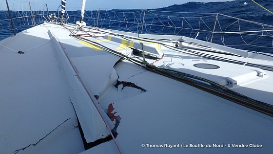 Ruyant je poslao video oštećenja koje je nastalo kako on vjeruje zbog sudara s brodskim kontejnerom dok je jedrio brzinom od 17 čvorova. Na videu se vidi vertikalna otvorena pukotina koja seže dolje ispod vodene linije posebno na lijevoj strani, raspuknutu palubu i vodu u brodu.