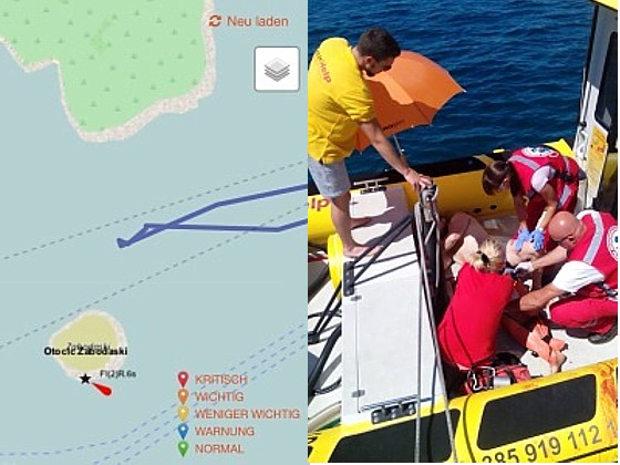 4. srpnja u 14.38 sati službenici MRCC Rijeka zaprimili su dojavu voditelja brodice tvrtke SeaHelp, koji je prijavio poduzetu spasilačku akciju, odnosno, hitan medicinski prijevoz teško ozlijeđene osobe koju je preuzeo (prekrcao) sa privatne brodice na poziciji ulaza u uvalu Mali Lošinj (zapadna strana otoka). Djelatnik tvrtke SeaHelp spasilačku akciju poduzeo je odazvavši se na signale posade brodice u proplovu, a koji su netom prije iz mora izvukli teško ozlijeđenu mlađu mušku osobu, pretpostavlja se da je poljski državljanin, nakon što su uočili da doziva u pomoć pokušavajući se održati na površini mora, nedaleko navedene pozicije prekrcaja.
