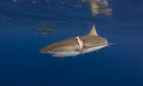 Morski pas, očito već duže vrijeme zapleten u konop ribarske mreže, počeo je gubiti bitku za život. Debeli konop duboko mu se usjekao u tijelo i onemogućavao normalno plivanje. Stoga je morski pas počeo tonuti.